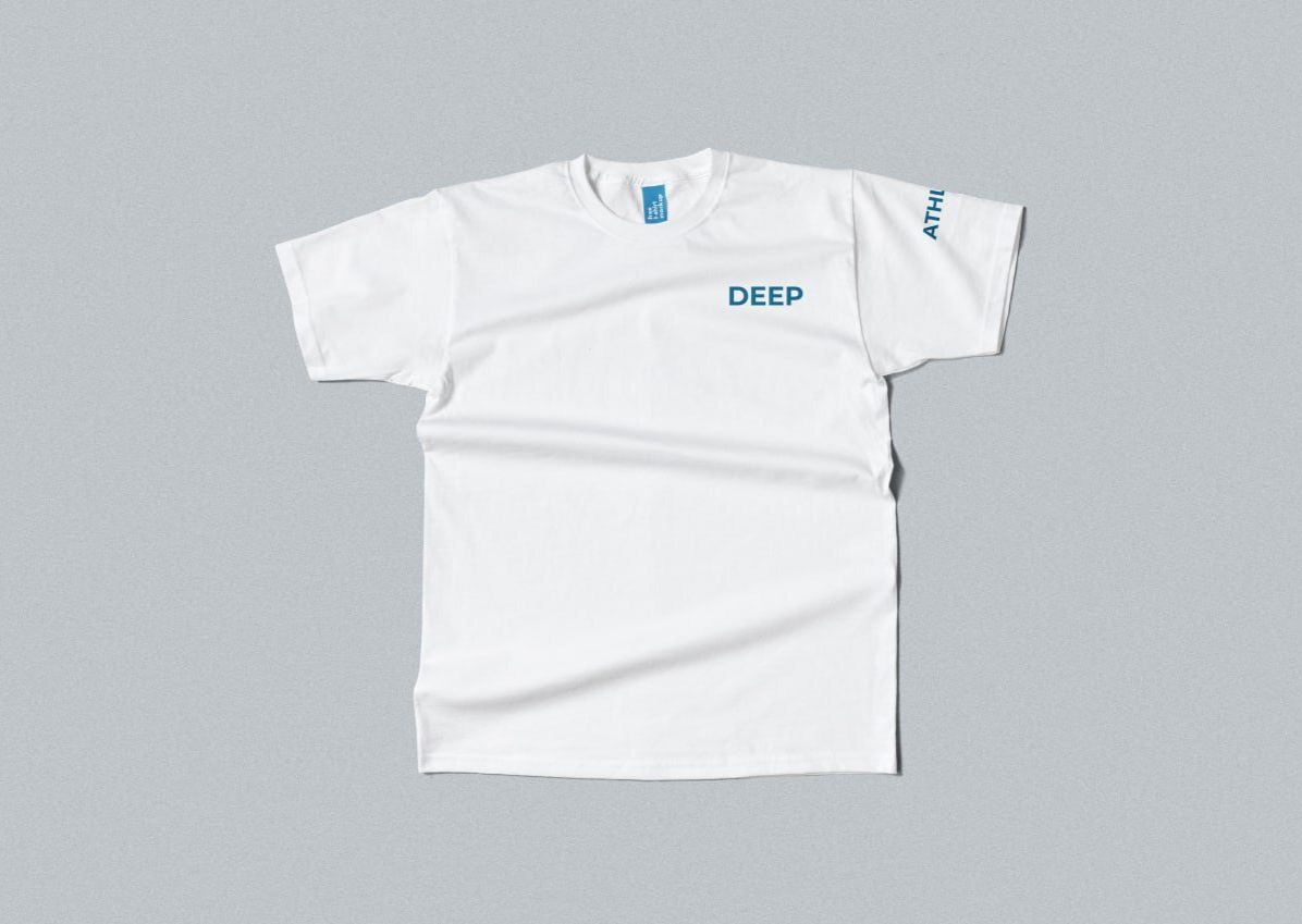 Командная футболка свободного силуэта, оригинальный принт DEEP. На правом рукаве надпись ATHLETE.